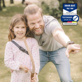 Der 85 cm lange Holzbogen liegt gut in der Hand und ist speziell für Kinder entwickelt. Die weichen Gummispitzen der Pfeile sorgen für ein sicheres Spielerlebnis, während die integrierte Zielhilfe schnelle Erfolgserlebnisse ermöglicht. So wächst das Selbstvertrauen mit jedem Treffer. Der verstellbare Filzköcher passt sich der Körpergröße an und macht jeden Ausflug praktisch und realistisch.