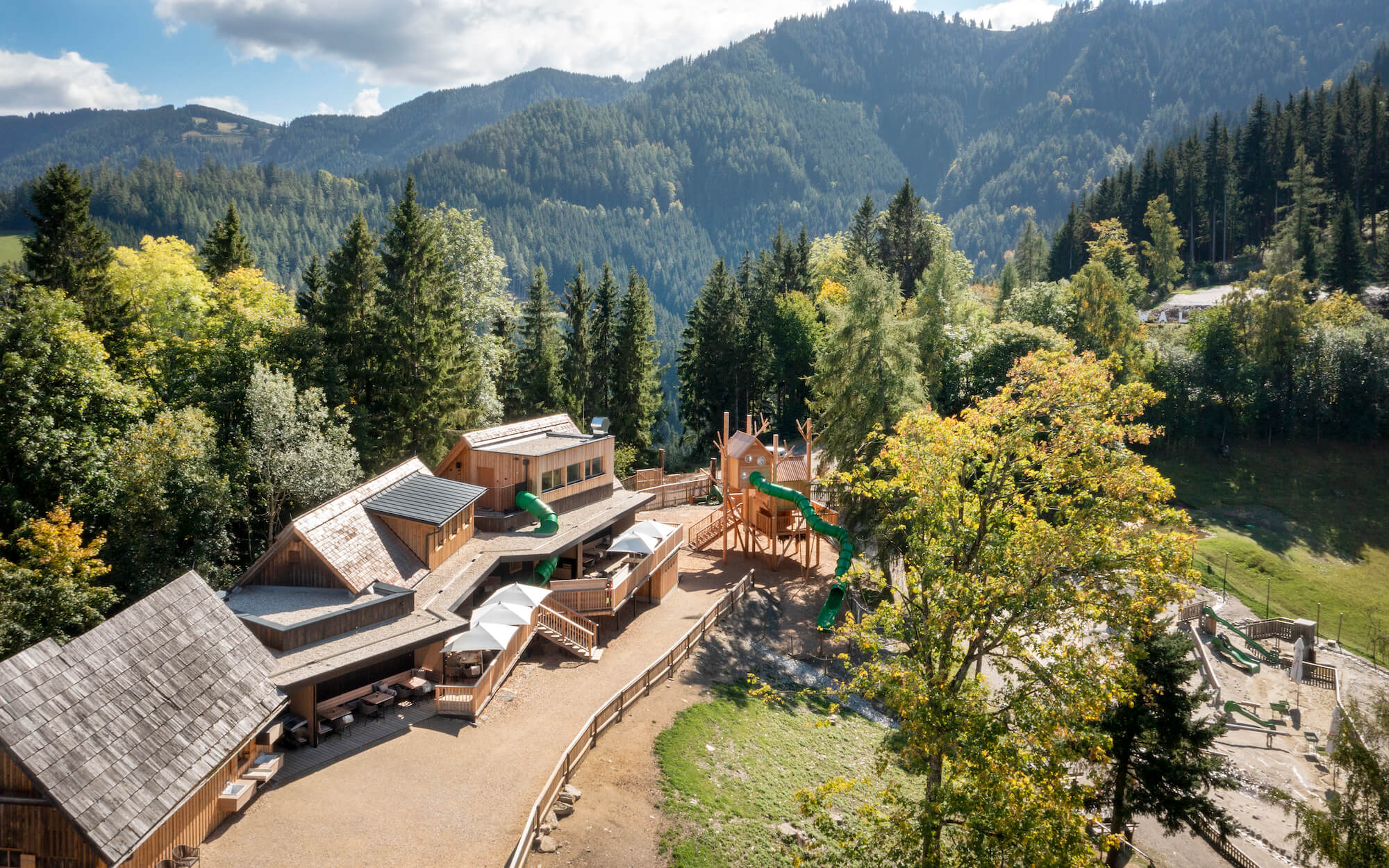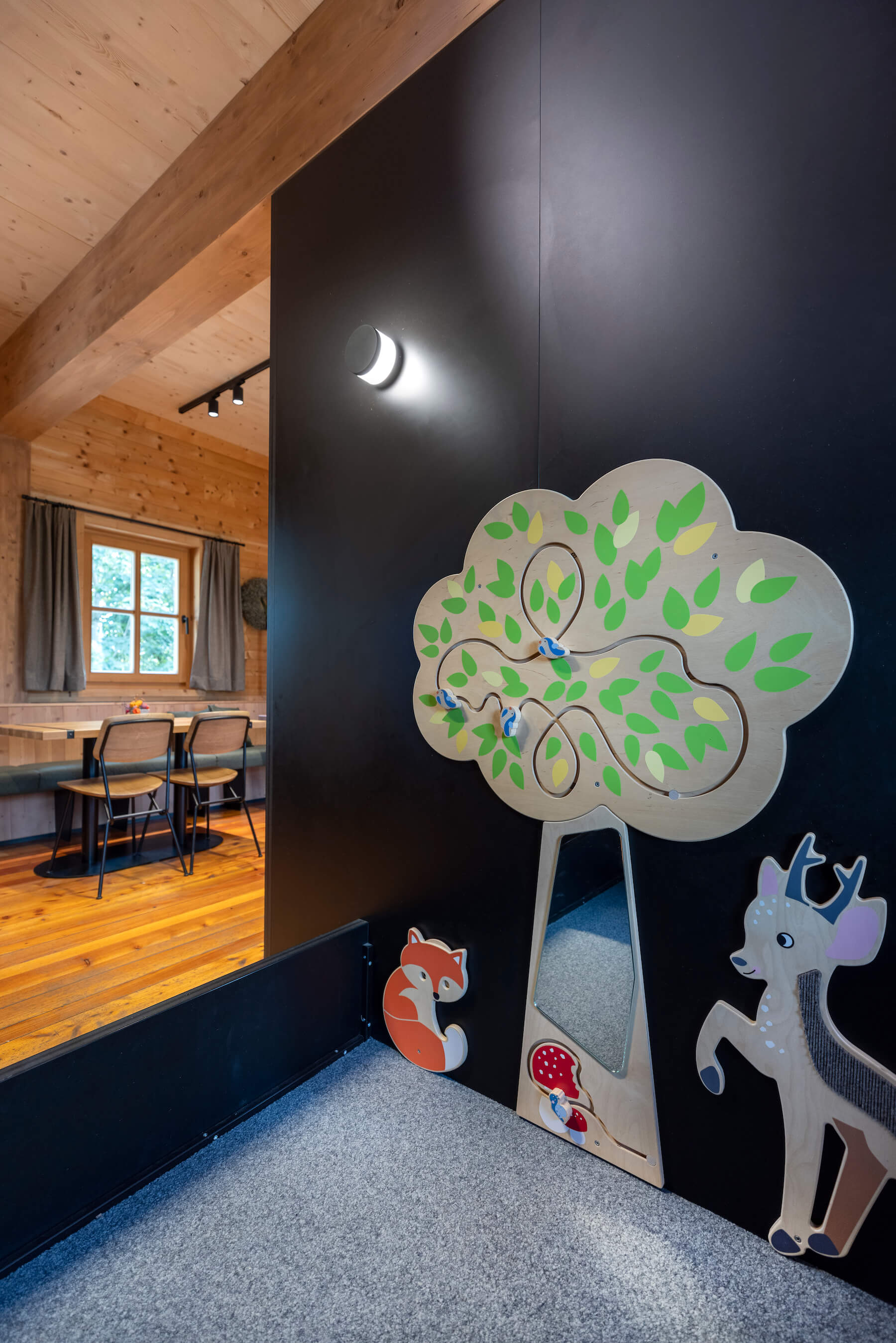 Der direkte Blick auf den angrenzenden Kinderspielplatz im Freien und den Wasserspielplatz mit großem Sandspiel- und Gatschplatz ermöglicht es den Eltern, auch ältere Kinder immer im Auge zu behalten. So können die Großen es sich nach dem Essen sogar noch in Ruhe einen Kaffee gut gehen lassen oder einfach mal die Sonne und das herrliche Ambiente genießen.